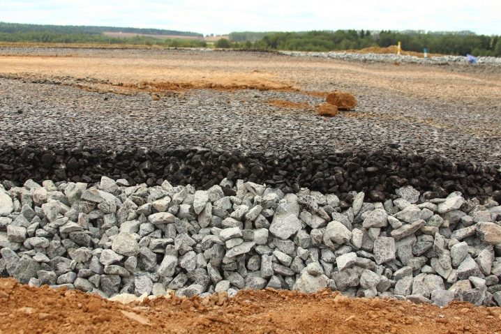 - Une couche de sable et de pierre concassée d'une épaisseur de 20 et 15 cm est versée sur le fond, respectivement, renversée avec de l'eau et percutée.
