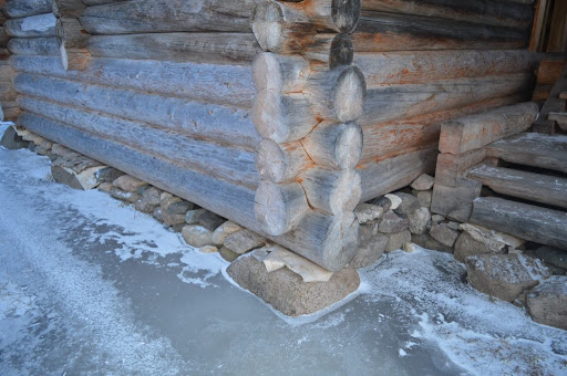 De telles maisons subsistent longtemps, malgré les fondations inhabituelles. La pose sous la forme d'un tapis de sable et de gravier amortit les vibrations et les déplacements du sol, et une couche imperméabilisante empêche la pourriture des pièces en bois.