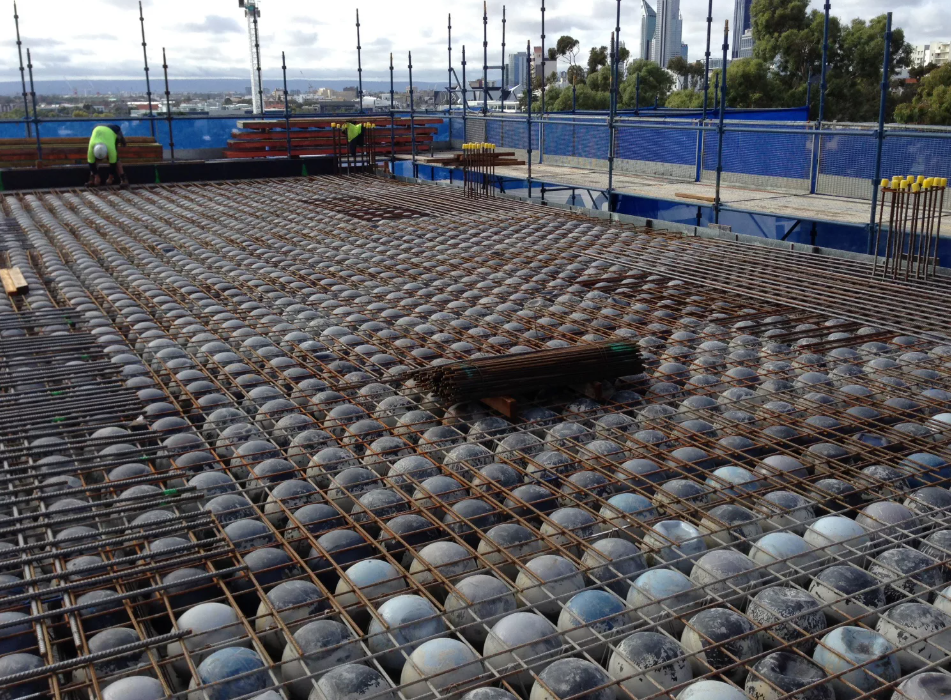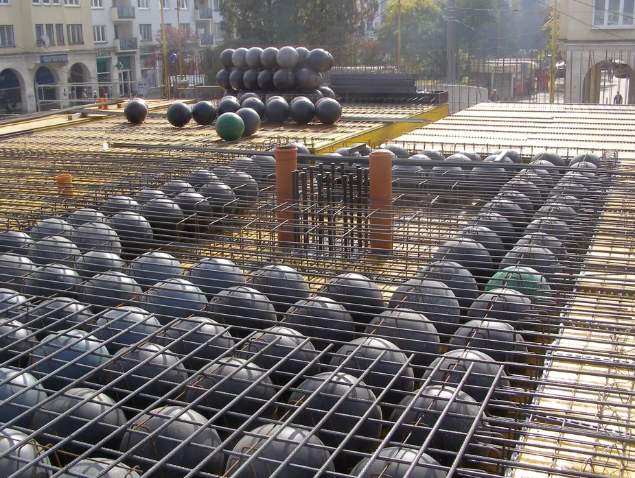 Une technologie qui prévoit la création d'une dalle creuse biaxiale, où des billes creuses sont incluses dans l'élément. Grâce à ces billes, le poids de la structure est nettement inférieur et les propriétés portantes restent au niveau requis.