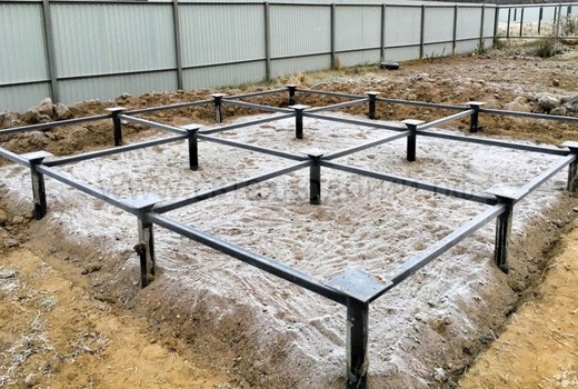 Les pieux sont immergés dans le sol selon le schéma établi en tenant compte de la charge attendue. Après avoir aligné les supports, ils sont reliés en une seule structure avec un grillage.