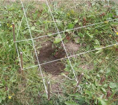 - Excavation de trous jusqu'à 60 cm de profondeur.Enlèvement de cailloux, racines, nivellement du fond et son compactage.