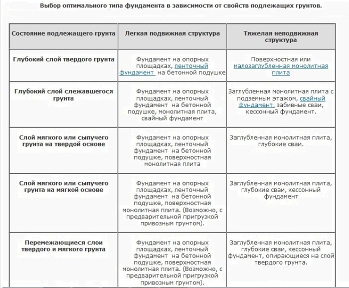 Le principal facteur affectant le choix de la fondation est le type et l'état du sol sur le site.