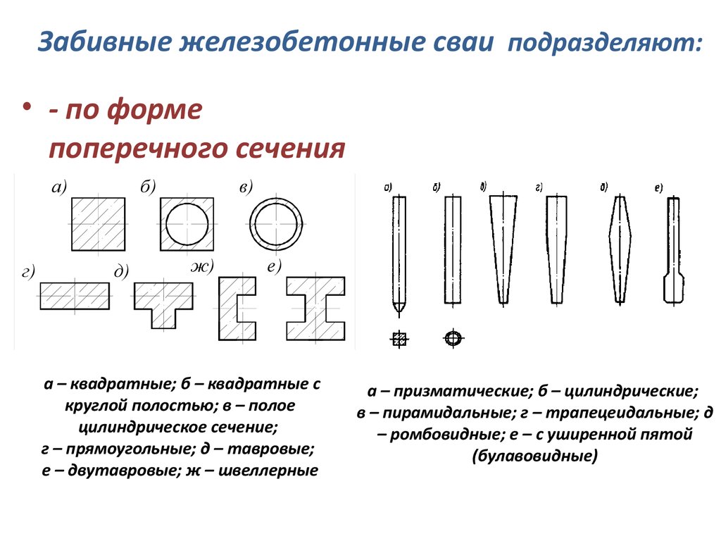 - C - solide à section ronde ou carrée, renfort interne non tendu. La version composite est réalisée avec un renfort transversal du canon. Section (rayon) 200 mm, longueur 3-6 mètres.