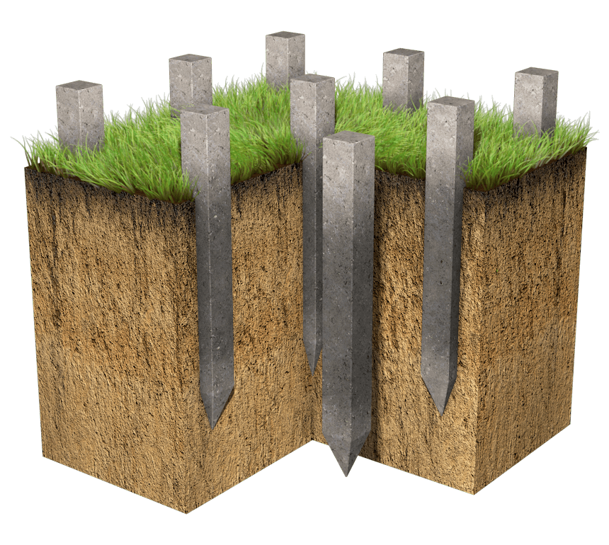 - Installation directe de pièces de fondation souterraines.