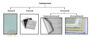 A la base, des fils de polyester, de polyamide, de fibre de verre ou de polypropylène sont utilisés ; dans les versions mixtes, des fibres de coton ou semi-laine, de la viscose sont attachées. Ils sont utilisés dans différents domaines de gestion, dans la construction, la pierre concassée est posée sur des géotextiles ou du sable, les fondations sont enveloppées.