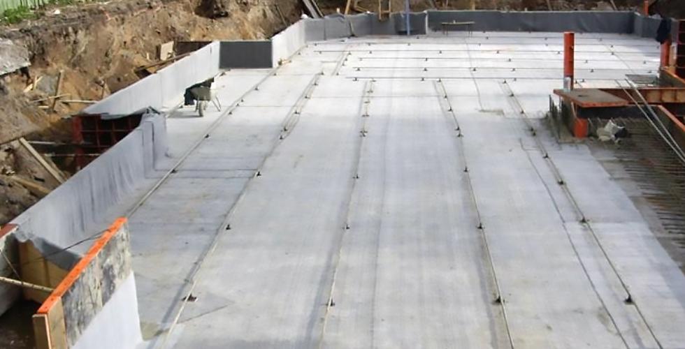 Pour une protection fiable de la fondation de la dalle, des variétés de polymères de textiles thermopressés sont utilisées pour protéger la dalle monolithique en béton des effets du sol et de l'eau de pluie.