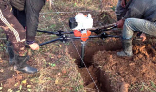 - Des puits de la profondeur requise sont réalisés sur un site pré-marqué à l'aide d'une perceuse spéciale.