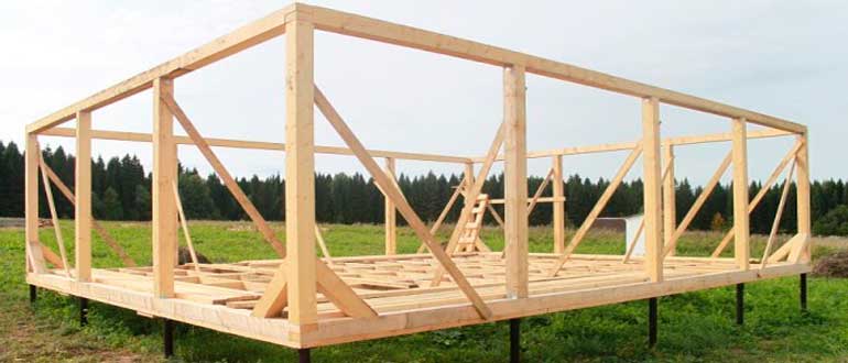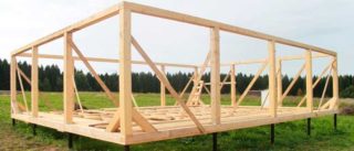 Comme base pour une maison sur pilotis, on utilise un cadre de composition composé d'une barre de section et de profil appropriés. Lors de son agencement, les haubans sont posés sur les plates-formes supérieures des supports de pieux, où ils sont fixés avec plusieurs boulons d'ancrage ou des supports spéciaux. Entre eux, les flans de bois sont fixés avec des agrafes de taille appropriée.