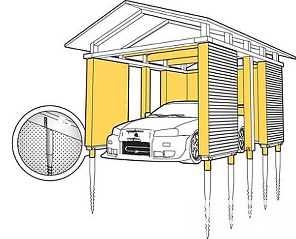 Un garage sur pieux vissés est équipé si le site est situé sur un sol mouvant instable. De plus, cette option convient si la pièce est érigée à proximité d'un autre bâtiment, ce qui rend difficile le placement de forages et autres équipements.