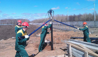 - Le site est en préparation pour les travaux. Étant donné que les pieux vissés peuvent être installés sur des terrains en pente, un nivellement parfait du site n'est pas nécessaire. Il est nécessaire d'enlever les débris et d'enlever la couche arable, qui comprend de la végétation et est riche en composés organiques.
