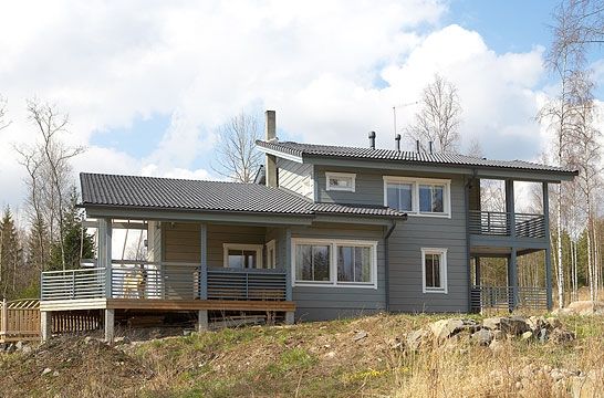 Les garnitures de fenêtres et de portes sont montées après que la maison ait été stabilisée pendant six mois. Le retrait est dû au séchage du bois et au scellement des joints. Si du bois lamellé-collé coûteux est utilisé pour le revêtement extérieur, une finition supplémentaire n'est souvent pas nécessaire, car le matériau est magnifique. Il est recouvert de composés anti-incendie et hydrofuges en plusieurs couches, puis peint ou verni.