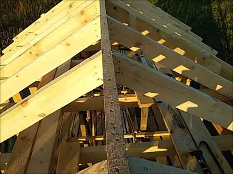 Les chevrons sont installés avec un pas de 1,2 à 1,5 mètre, ils forment une caisse pour fixer le matériau de toiture à une distance de 50 cm.Parfois, au lieu d'un rail de 50 x 50 mm, des feuilles d'aggloméré sont clouées sous la forme d'un continu sol sous ardoise, tôle profilée, tuile métallique.