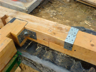 Le haut du cadre est lié avec des poutres en bois d'une section de bois de 15 x 15 cm.La ceinture sert de support pour l'installation de structures de toit en forme de Mauerlat, de cerclage et de chevrons.