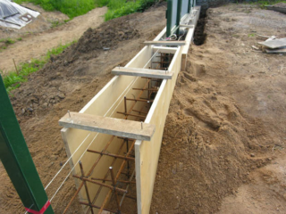 Lors de l'aménagement d'une telle base, le béton est coulé dans un coffrage en bois renforcé d'un cadre en treillis. Pour renforcer la structure, des gravats ou du gravier sont ajoutés. Pour calculer le béton d'une fondation en bande, vous devrez déterminer ses dimensions linéaires. En règle générale, la valeur minimale pour la hauteur de la partie aérienne est de 40 cm, largeur - 30 cm.