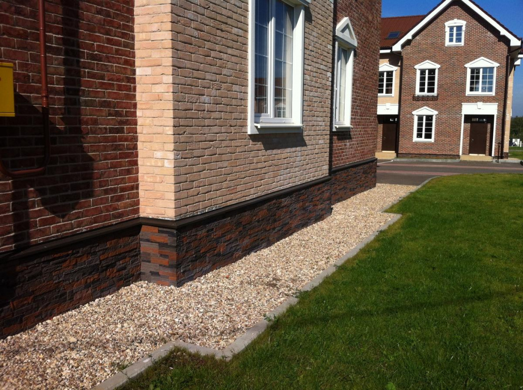 - Protection des murs extérieurs contre la saleté et l'humidité provenant de l'herbe mouillée et des éclaboussures pendant la pluie.