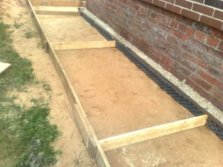 - Délimitez, enlevez la couche de sol fertile, creusez une tranchée, nivelez et tassez son fond. Vous pouvez traiter la terre avec des herbicides.