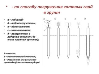 Les constructeurs ont à leur disposition une installation de pressage des pieux, à l'aide de laquelle le support est enfoncé en douceur dans le sol. Pour que le tas pénètre dans des couches denses, le processus d'indentation est terminé en appliquant plusieurs coups sur sa tête.