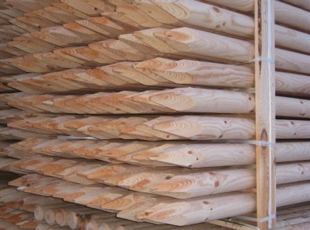 Les piles de bois jusqu'à 40 cm de diamètre sont constituées de bois dur (chêne, cèdre, etc.). L'extrémité approfondie d'un tel support est équipée d'un embout métallique et la partie supérieure est protégée des fissures par un cerceau métallique spécial. Si une fondation sur pieux d'une résistance particulière est requise, des "paquets" sont utilisés - un paquet de plusieurs pieux, qui sont enfoncés dans le sol dans son ensemble.