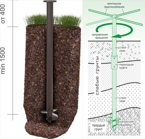 Si le poteau heurte un obstacle solide à une profondeur de plus de 1,5 mètre, vous pouvez le laisser dans cette position et couper le haut à un niveau. La tige filetée est tordue jusqu'à ce qu'elle s'enfonce profondément dans le sol, après l'arrêt le pieu est considéré comme correctement enterré.