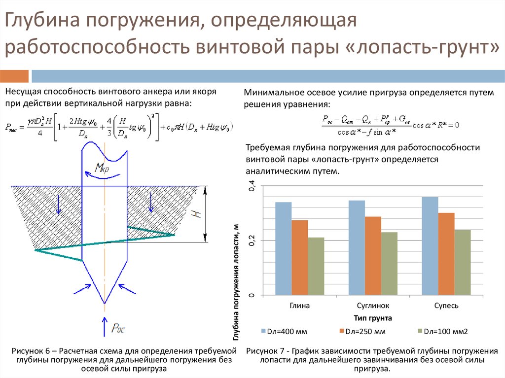 La marque d'approfondissement est trouvée par calcul et par la méthode de vissage dans les pieux vissés du groupe témoin. La connaissance du sol influence la conception des fondations et détermine le coût. Sur le chantier, des points de recherche sont sélectionnés afin de visser des pieux de différentes longueurs et sections.