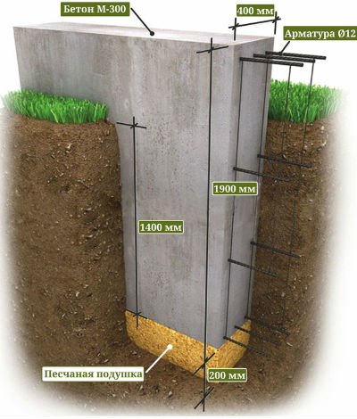- Monolithique. C'est un contour fermé d'une dalle orientée verticalement. L'agencement est effectué directement dans la tranchée, dans laquelle le coffrage, le cadre est réalisé, après quoi le béton est coulé. Ce type est considéré comme le plus durable et le plus fiable.