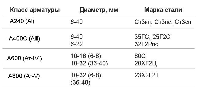 La classe A-III comprend des renforts nervurés, la nuance d'acier dans laquelle est désignée A400 (elle a un indicateur de résistance plus élevé). De plus, de telles ébauches offrent une meilleure adhérence au béton et ont une limite d'élasticité de 390 à 400 N/mm2. Ces indicateurs permettent d'étirer les tiges d'acier de 25 mm sans les casser, ce qui est très important pour le renforcement vertical et transversal et le cerclage longitudinal. Le tableau des classes de ferraillage contient toutes les caractéristiques nécessaires, y compris le poids et la section des pièces. Selon les normes européennes, des aciers portant la désignation A500C sont utilisés pour maximiser le renforcement du cadre. Lors du décodage du type de renfort dans ce cas, il est pris en compte que la lettre "C" signifie l'admissibilité de souder le produit tout en préservant ses propriétés physiques.