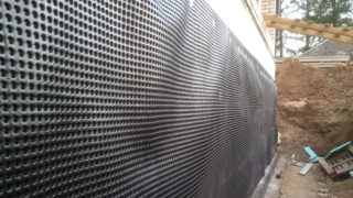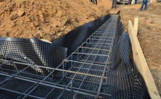 L'étanchéité verticale peut être réalisée sur un bâtiment en construction ou terminé. Pour une installation correcte, il est nécessaire de permettre l'accès à la structure en élargissant la tranchée à 0,8 m.La surface de la fondation est nettoyée des saillies coupantes qui peuvent endommager le film. La membrane est fixée avec des bandes et pend librement verticalement.