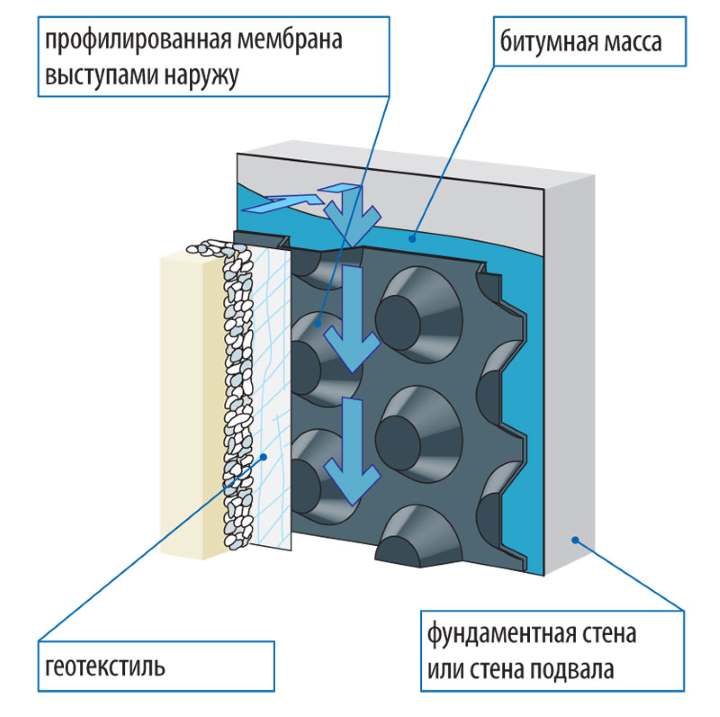 Des matériaux de membrane sont nécessaires pour protéger la fondation de l'humidité pénétrante. Lors de la construction, il sépare la base du sol, des murs et des couches poreuses de matériaux saturés d'eau. Le contact avec l'eau est dangereux pour la plupart des matériaux de construction - le liquide pénètre dans les pores, après quoi le matériau gèle avec formation de fissures, les composants de liaison sont lavés et la corrosion de l'armature est accélérée. Les matériaux poreux des murs à conductivité thermique accrue, lorsqu'ils sont saturés d'humidité, réduisent les propriétés d'isolation thermique, des microfissures et des champignons apparaissent et la capacité portante diminue. La membrane d'étanchéité permet à l'humidité de ne passer que dans une seule direction - depuis la pièce.