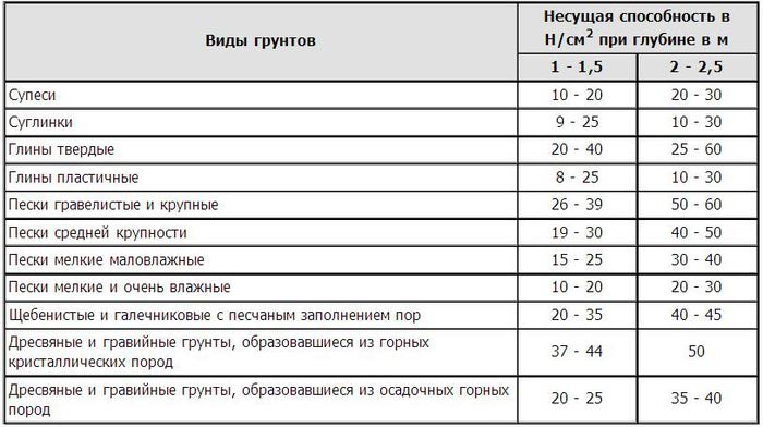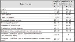 En outre, des tables SNiP de la capacité portante du sol sont utilisées, où la valeur requise peut être trouvée par type de sol.