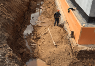 Lorsque la tranchée est remblayée, il est nécessaire d'aménager une zone aveugle inclinée pour évacuer l'eau de la fondation. L'inondation du sol à proximité est destructrice pour les fondations établies.