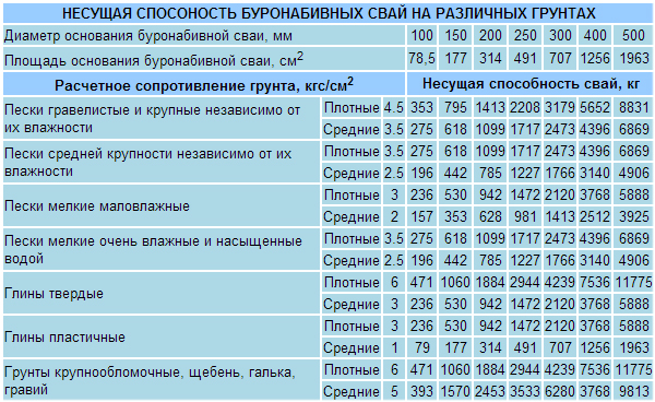 Tenez compte du fait que la charge réelle utilisant les coefficients nécessaires ne doit pas être supérieure à la résistance du sol calculée. La valeur correspondante dans le tableau est sélectionnée et le diamètre du pieu est déterminé. Des calculs compliqués sont effectués par des ingénieurs, vers lesquels le client se tourne pour trouver les paramètres de la fondation.