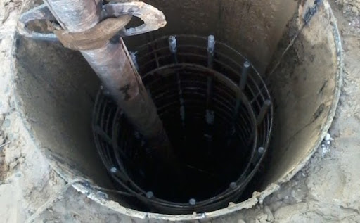 Une perceuse avec une vis ou une perceuse effectue un passage de la section et de la longueur choisies. La tête de puits est tubée avec une section de tuyau en acier. L'élargissement en bas est effectué s'il est dans le projet. Une étude documentaire du puits est réalisée après l'achèvement du forage. Une structure de renfort est placée dans le coffre pour augmenter la capacité portante. Le bétonnage est réalisé par la méthode d'une coque mobile, des tuyaux en béton sont utilisés. Ils sont droits ou télescopiques.