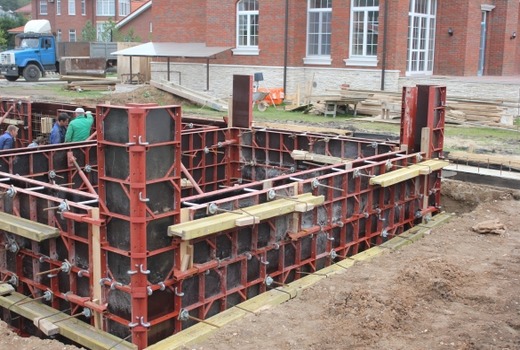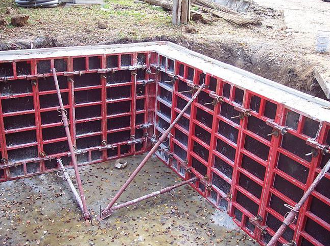Une structure auxiliaire faite de divers matériaux donne forme aux produits en béton et détermine leur emplacement dans l'espace. Le coffrage de la fondation est composé d'éléments qui limitent les dimensions, soutiennent le mélange de construction jusqu'à ce qu'il durcisse. La structure auxiliaire est généralement démontée après durcissement et la coque non amovible devient une partie de la base.