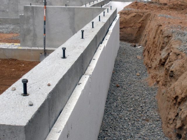 Sur une telle fondation, vous pouvez construire une maison à un étage et équiper un sous-sol. La structure doit être bien enterrée (en dessous du niveau de congélation) et suffisamment large (minimum - 0,5-0,6 m). La litière est faite de faible épaisseur - 0,2-0,4 m, remblayage - au moins 0,4 m de chaque côté. Les sinus de la fosse sont remplis d'un mélange de pierre concassée de sable. Les bandes fendues sont totalement inadaptées à l'argile, dont les zones en retrait sont coulées dans le coffrage en terre.