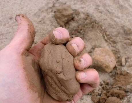 Pour déterminer à quel point le sol du site est riche en argile, vous pouvez effectuer des manipulations simples: essayez de rouler un morceau de terre dans un garrot, et faites une boule avec l'autre et pressez-le avec vos doigts. Les sols sablo-limoneux ne se prêtent pas en principe à de telles opérations. Lorsque vous essayez d'en modeler quelque chose, seuls des grumeaux instables apparaissent. La tresse de limon s'avère massive (1 cm d'épaisseur ou plus). Si une balle est fabriquée à partir d'un tel sol et pressée, de petites fissures apparaîtront dessus. La corde d'argile sort mince. En règle générale, lorsque la balle est pressée, aucune fissure n'apparaît dessus.