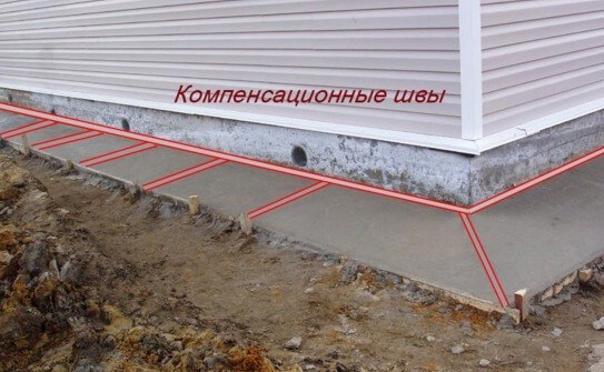 - Négligence des joints de dilatation. Lorsqu'il est chauffé, le béton se dilate et s'il n'y a pas de place pour cela, la dalle éclate. Les joints doivent être à la jonction de la dalle et des murs, ainsi qu'à travers la dalle.