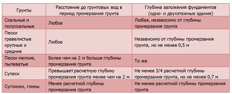 La base est conçue de manière à ce qu'après avoir été mouillée dans le sol, il n'y ait pas de glissements et de glissements, dont dépend l'intégrité de la maison. Dans les sols gonflants, la fondation est posée 10 à 20 cm sous le point de congélation, et dans les sols stables, le niveau de gel n'est pas particulièrement important. Dans les bases préfabriquées, la taille de la fondation est prise comme un multiple de la hauteur du bloc de béton armé.