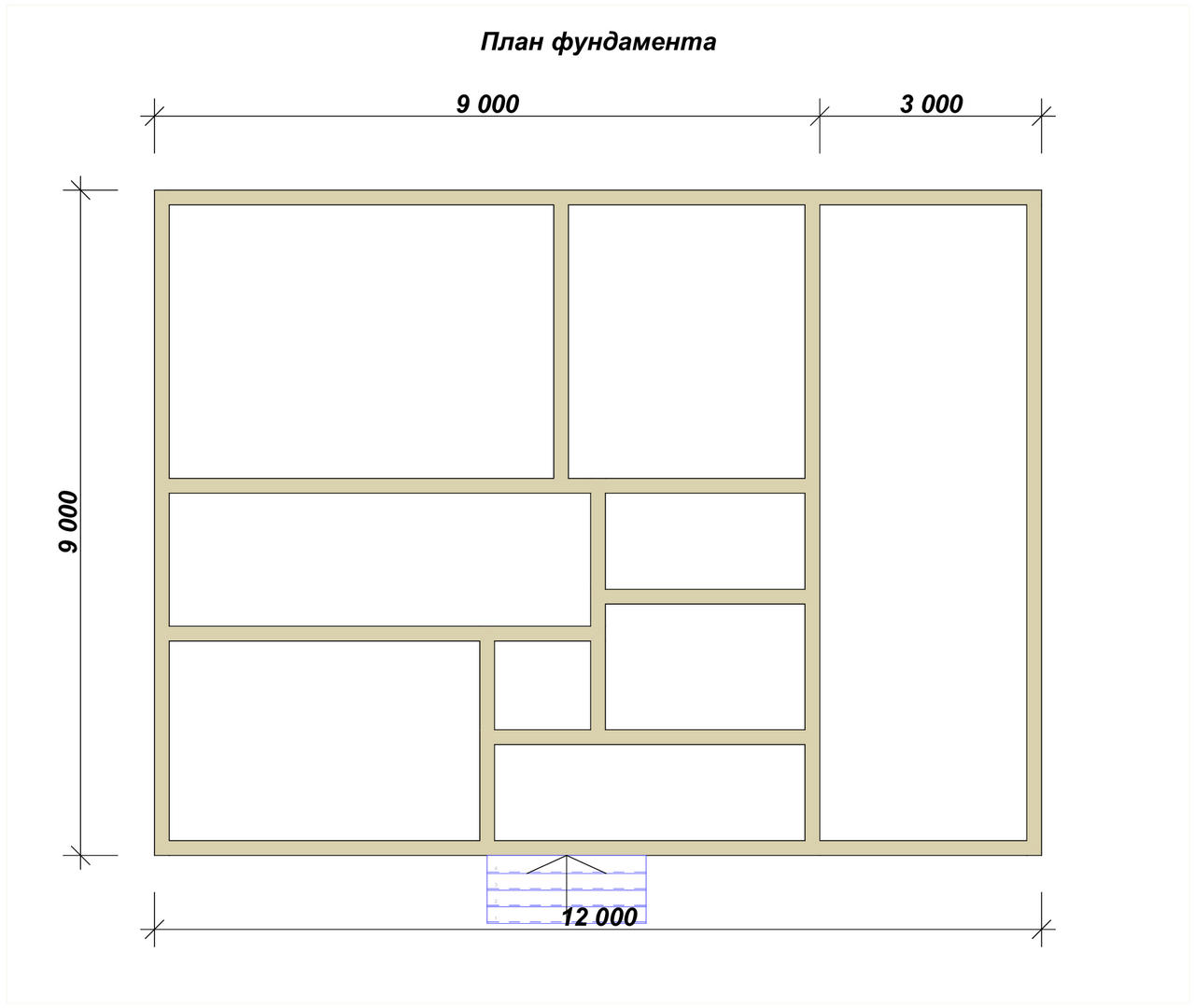 Le plan de la future fondation est établi après le dessin principal de la structure. Des supports sont prévus sous les murs, des sections supplémentaires sont réalisées pour les colonnes, les éléments verticaux, de sorte que le contour du plan peut être de différentes formes.