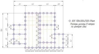Des tiges rondes, rectangulaires ou composites sont immergées dans le sol, les pieux sont en métal, béton, bois. Le dessin indique les groupes de pieux et leur emplacement dans le plan en référence aux axes de la structure. Sur le schéma, placez la position du grillage en forme de dalle ou de poutre pour attacher des supports verticaux.
