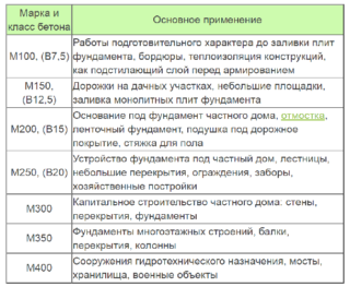 La marque est attribuée en fonction de chaque domaine d'application. Les conditions de préparation et de transport à distance, les circonstances de durcissement sont prises en compte. La taille de la charge grossière est choisie, qui est liée à la capacité de la bétonnière, son type, les dimensions du produit et le niveau de renforcement.