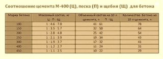 Tout cela est très bien, mais en pratique, les composants ne sont pas mesurés en masse, mais en volume. J'ai été invité à une telle proportion volumétrique: tous également. Ciment / sable / pierre concassée = 1/1/1. Il me semble qu'il n'y a pas assez de gravats. Qui comprend, dis-moi