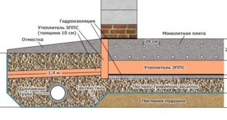 L'isolation par plaque est la meilleure option lors de l'installation d'une zone aveugle. Le matériau est imperméable, durable et possède des caractéristiques d'isolation thermique élevées. L'épaisseur des dalles est de 80-100 mm.