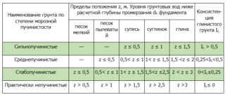 Une augmentation des particules structurelles entraîne une diminution du degré de soulèvement. Les fondations dans de telles couches sont enterrées indépendamment de la marque de gel et du niveau de stabilité du liquide du sol.
