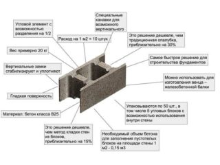 Lors du choix d'un matériau, les conditions climatiques de la région et les caractéristiques géologiques du site sont prises en compte. Les concepteurs suggèrent le type de blocs de béton qui conviennent aux caractéristiques des conditions d'exploitation.Les vides présents dans les produits lors de la construction des murs des bâtiments non chauffés ou des locaux techniques sont remplis d'isolant.