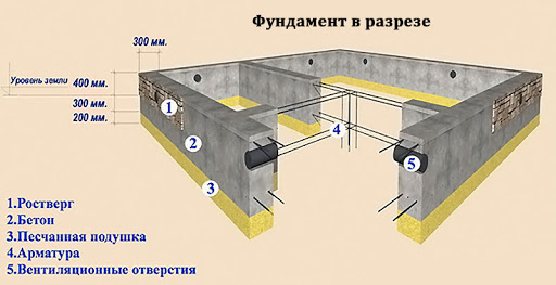 Les fondations en bandes dans les constructions de faible hauteur font référence à des structures en béton armé sans armature de précontrainte.