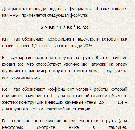 Le calcul de la fondation de la maison est effectué selon la méthode suivante: