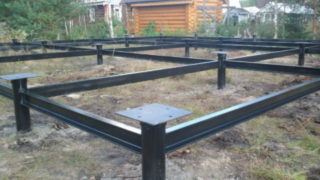 Pour les structures légères, par exemple les terrasses et les hangars avec des animaux, une méthode de calcul et d'installation simplifiée est utilisée. Il suffit d'installer des pieux dans les coins du bâtiment et de faire un cerclage avec une barre.