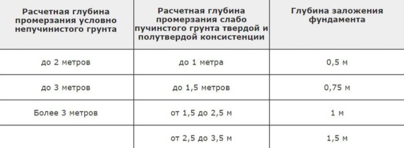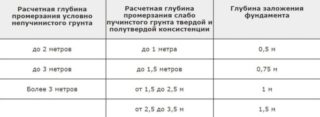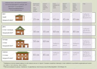 La profondeur dépend du degré de gel du sol. Si la valeur ne dépasse pas 6 m, une telle structure est considérée comme peu profonde. Lors de sa construction, vous devez aborder les calculs de manière responsable. Une telle fondation est peu coûteuse, construite rapidement, mais ne convient pas aux structures lourdes. Dans d'autres cas, une base est requise pour toute la profondeur de gel du sol.