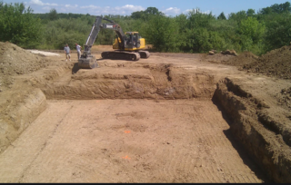 - Extrait de la fosse de fondation. Alignement du fond et compactage.