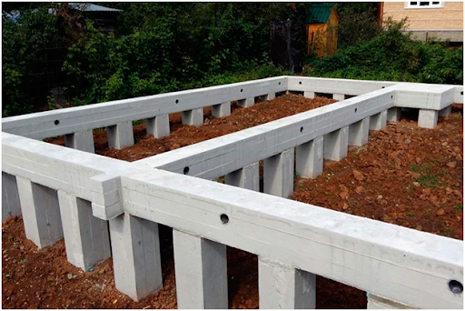 - De colonne. Cette conception est utilisée sur des sols denses et stables qui ne sont pas sujets au soulèvement. Les supports sont coulés sur place ou les produits finis sont exposés. Après l'alignement, les piliers sont recouverts de plaques et ce n'est qu'alors qu'ils sont attachés avec des épingles en acier. La structure devient alors monolithique.
